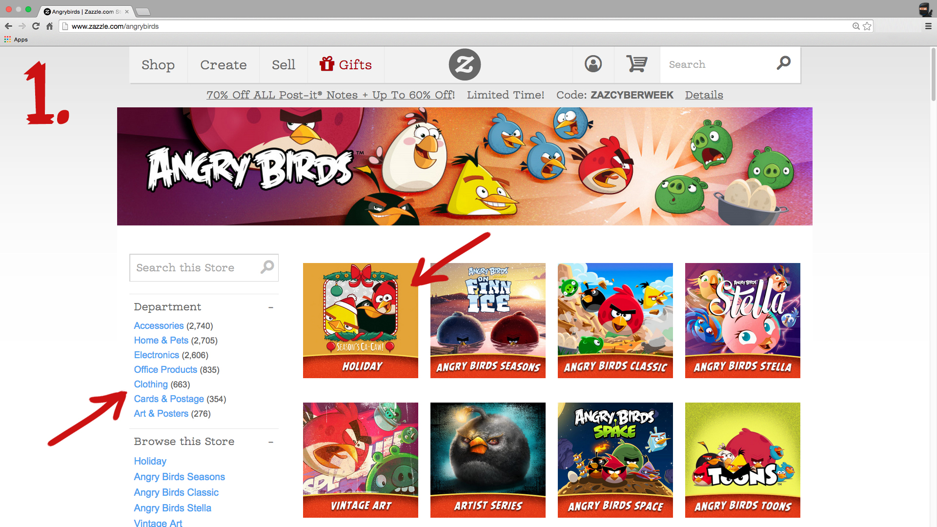 1. Choose one of the departments in the list on the left, or one of the Angry Birds themes on the right.