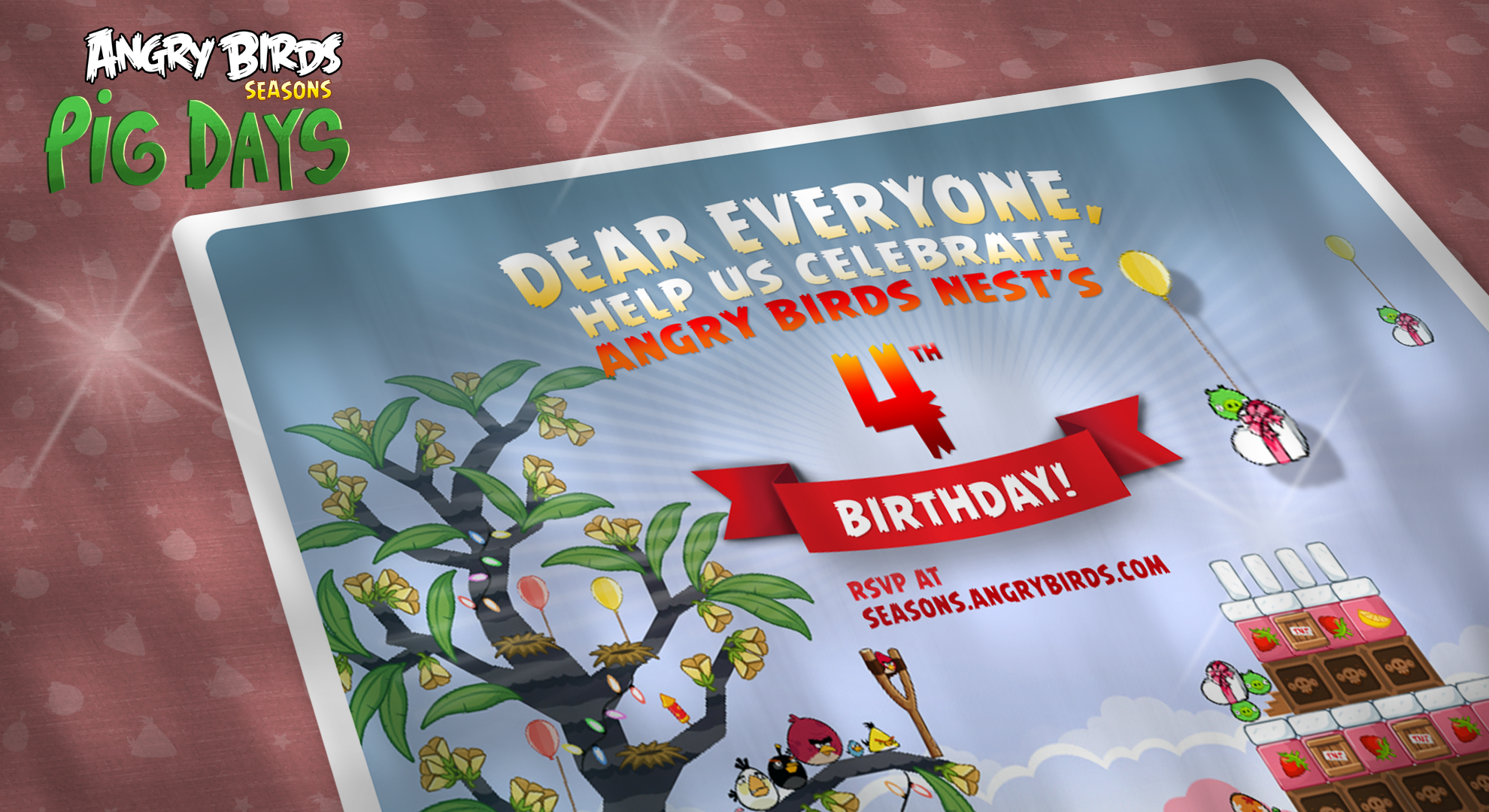 It’s party time here over at Angry Birds HQ, as our friends over at the Angry Birds Nest fansite are celebrating their fourth birthday today!